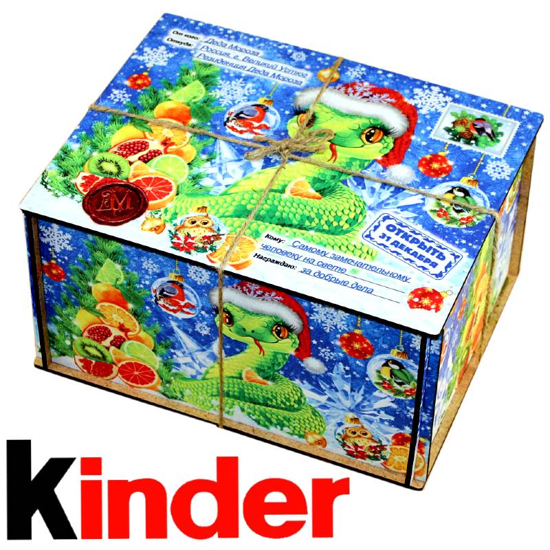 Детский подарок на Новый Год в упаковке из дерева весом 1000 грамм