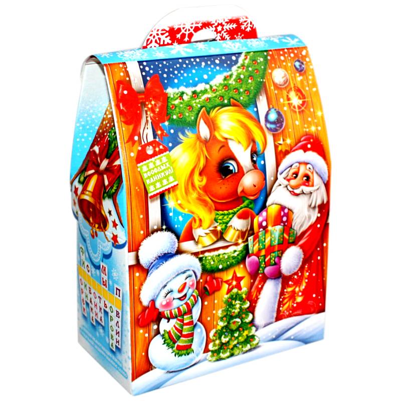 Сладкий новогодний подарок в картонной упаковке весом 600 грамм